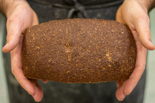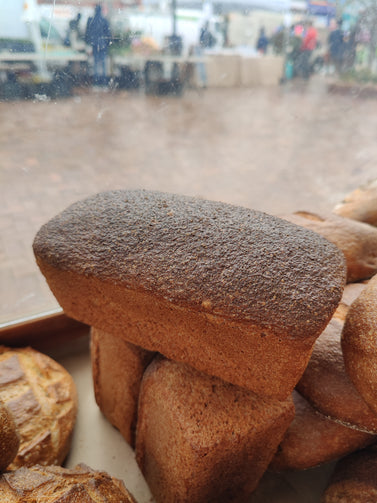 100% whole wheat sourdough comprised of our house milled whole grain, water, salt, and honey!
