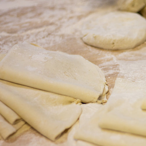 pastry flour, butter, and a dash of salt and sugar - the same dough we use for our signature pie crusts