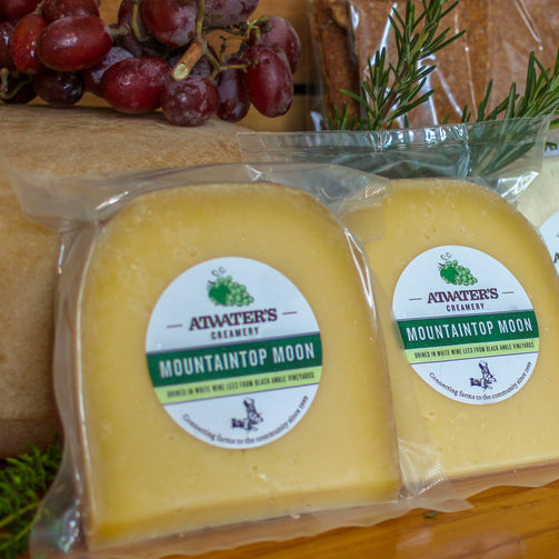 Instead of brining our Morrell Moon "Gouda style" cheese in a water-based salt-brine, we submerge the cheese in a brine made of beer or wine lees for 3 days. Throughout aging, the wheels are washed with their specific brine.